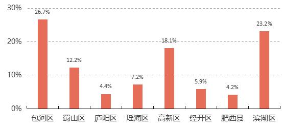 从各区域来看,肥西集中式长租公寓空置率最低,平均空置率仅为0.7%,其次为庐阳区和经开区;包河区和滨湖区房屋空置较多,空置率均超过20%。