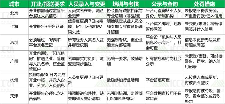 将于9月15日起施行的《住房租赁条例》,被业内视作住房租赁市场的”基本法”,不仅确立了合同备案、资金监管等关键制度,也把”住房租赁企业的人员管理”提升到了前所未有的高度。从组织建设、信息报送到执业培训、社会公示,条例明确要求企业必须具备与经营规模相匹配的从业人员和管理能力,并配合健全的内部制度。可以说,谁能把人员管理做到位,谁就能在未来的合规监管中站稳脚跟。 本文将从条例的相关要求切入,结合北京、上海、深圳、广州、杭州、天津等重点城市的实操做法,全面解读住房租赁企业如何落实人员管理的合规要求。