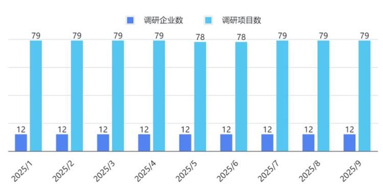 图:2025年1月-2025年9月调研企业和项目数(单位:家、个)