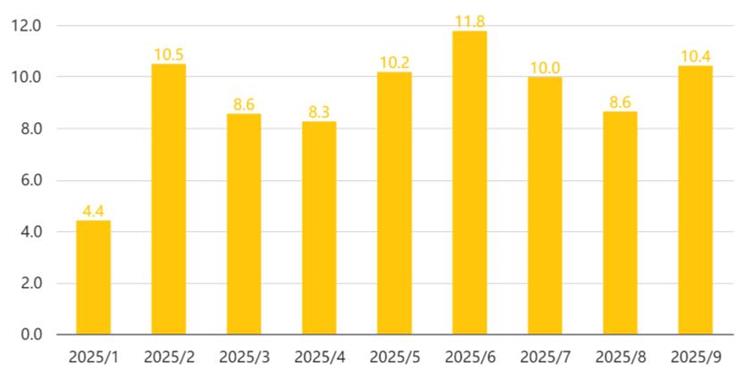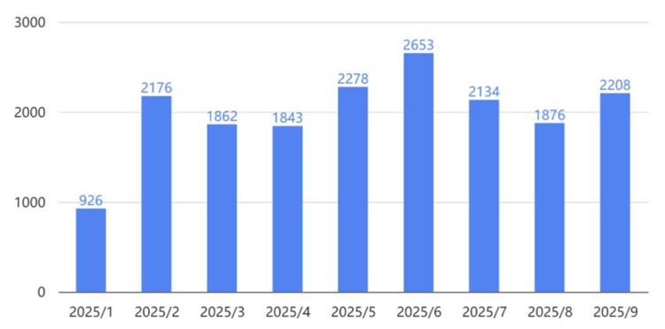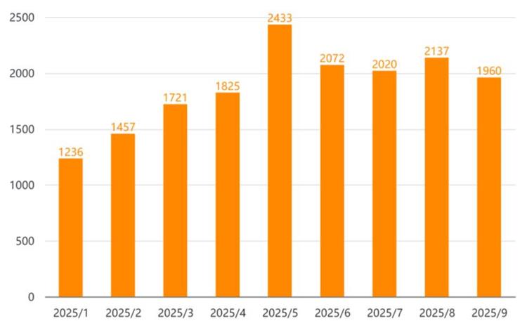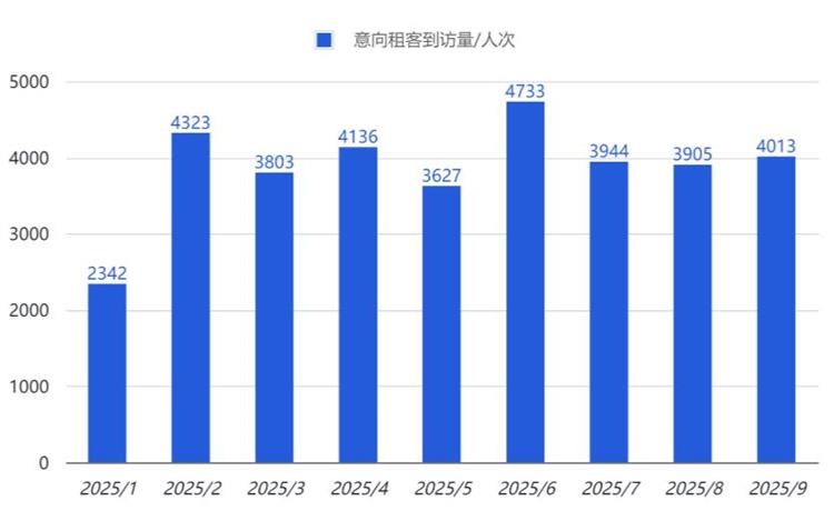 图:2025年1月-2025年9月意向到访客户数量(单位:人次)