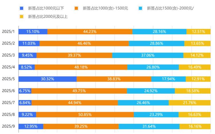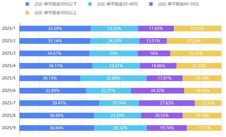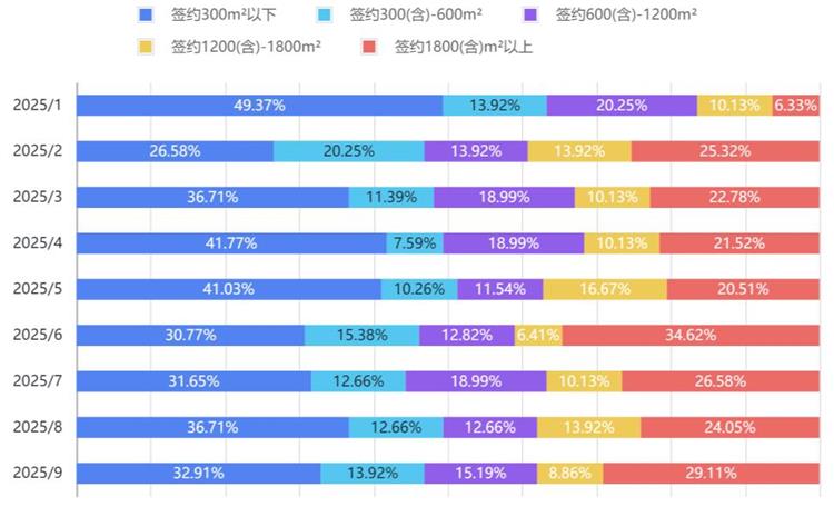 图:2025年1月-2025年9月不同区间段新签合同租金对比