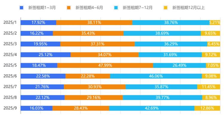 图:2025年1月-2025年9月不同租赁期限租客占比