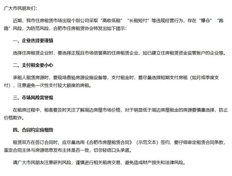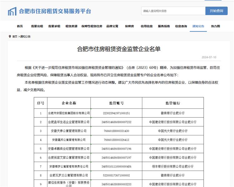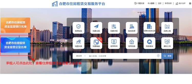 住房租赁企业应当按照规定设立住房租赁资金监管账户,并向社会公示。承租人可通过合肥市住房租赁交易服务平台(https://www.hfzfzlw.com/),查验住房租赁企业资金监管账户信息。