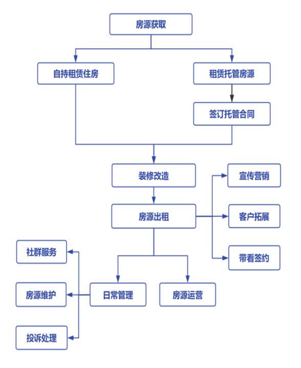 房源改造 | 对获取的房源进行统一的装修改造,使其达到可出租标准。 | |